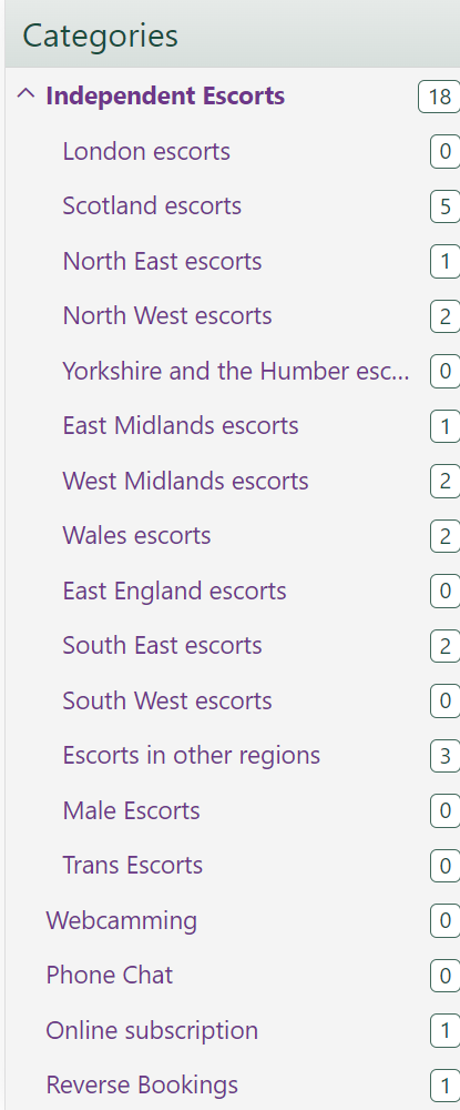 The classifieds section allows placement of ads by sex workers and reverse booking requests by punters.